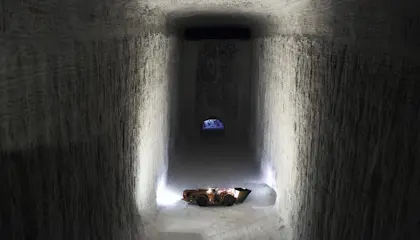 Müller fährt parallel zum Primärförderer, der 1.000 Tonnen pro Stunde zum Hauptbunker vor dem Schacht transportieren kann, der das Salz zur Verarbeitung an die Oberfläche befördert. Schon bald erreicht er die Produktionsfront, wo ein Sandvik LH621-Lader große Blöcke frisch gesprengten Rohsalzes von einer Halde zu einem Brecher transportiert, der das Material zunächst in grobe, etwa 15 Zentimeter große Stücke brechen muss, bevor es zum Schacht befördert werden kann.