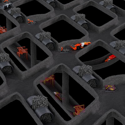 Another common occurrence in caving operations are hang ups – oversized materials blocking a drive or drawpoint which need to be broken up or blasted before production can continue. By integrating Newtrax technologies with AutoMine® and ORB, the closest breaker could be quickly identified and autonomously dispatched to resolve the issue.