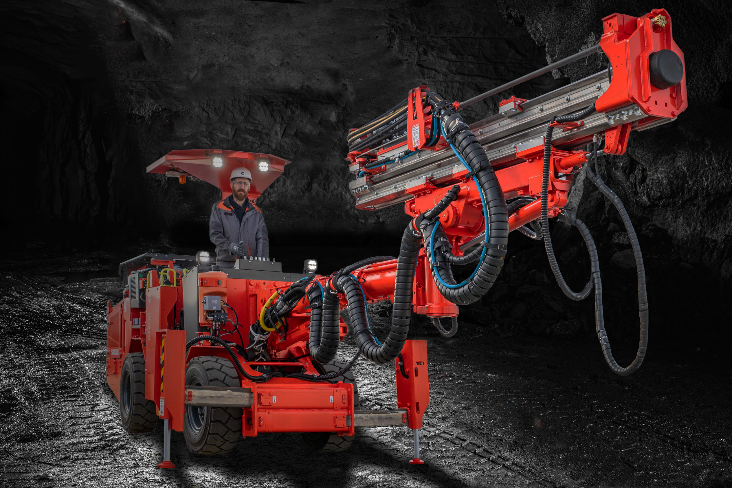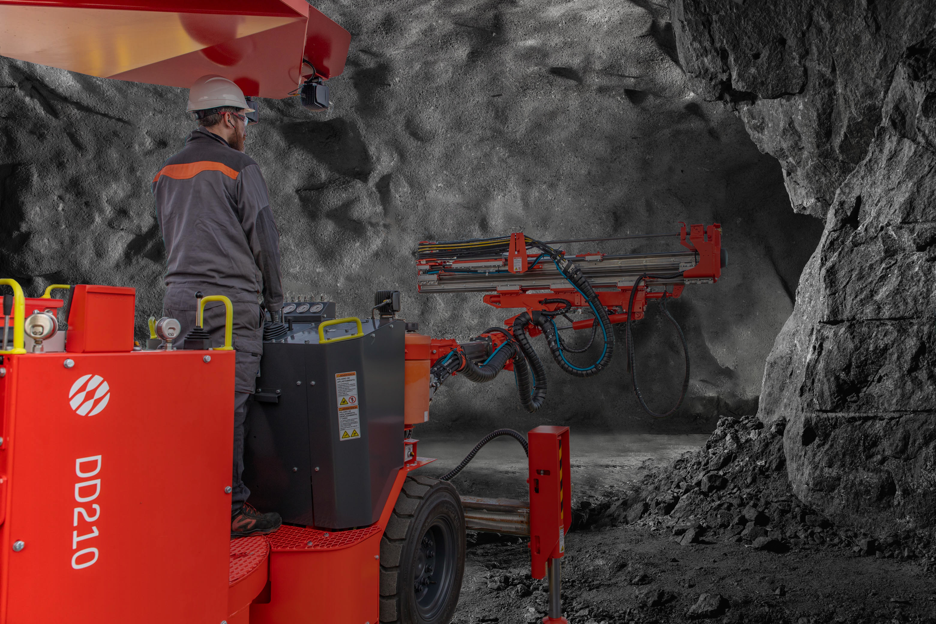 Sandvik DD210 is designed for good visibility and stability. Its heavy-duty articulated carrier ensures safe and stable maneuvering in small mine drifts and construction tunnels, thanks to its four-wheel drive transmission.