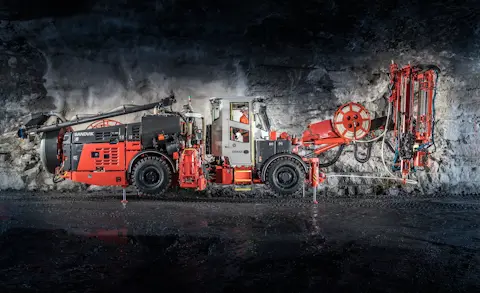 Sandvik DS422i is a rock support drill designed for cement-grouted cable bolt installation in underground mines and tunnels. The bolter can install up to 25 meter long cable bolts with several steel strands per hole and has an onboard automatic cement mixer and cement silo.