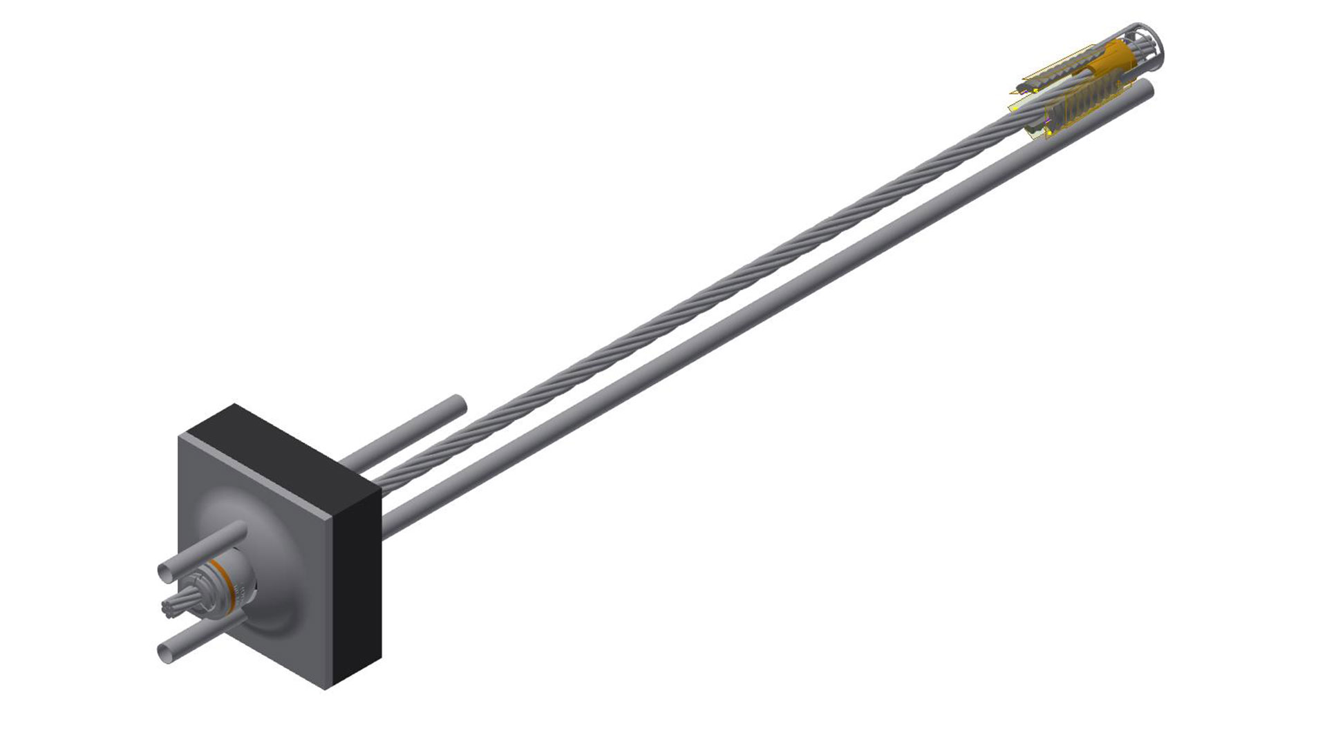 The hydraulically pre-tensioned anchor bolt, featuring a flexible seven-strand cable and a specially fabricated barrel, ensures easy installation with reliable load application and precise tensioning..