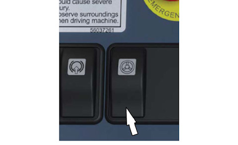 The emergency steering system activates automatically, but can also be activated manually by pushing and holding a button on the dashboard. It is interlocked if the emergency stop is activated or cabin door is open.
