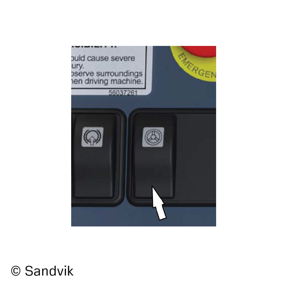 The emergency steering system activates automatically, but can also be activated manually by pushing and holding a button on the dashboard. It is interlocked if the emergency stop is activated or cabin door is open.