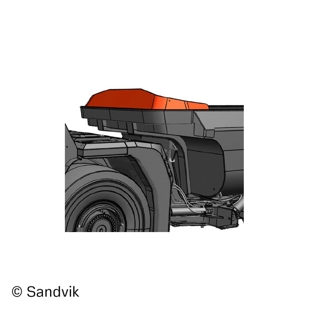 In order to mitigate this risk, Sandvik introduces a new spill guard assembly for TH551, TH551i, TH663 and TH663i dump trucks. The spill guard is designed to better protect the machine covers from falling rocks when loading the box. The spill guard does not require more space when tipping the box. It has to be welder on the box.