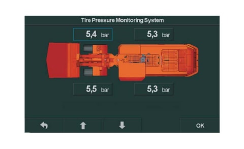 Sandvik on kehittänyt lastauskoneille rengaspaineiden valvontajärjestelmän (T.P.M.S.).Järjestelmä on täysin integroitu koneen älykkääseen ohjausjärjestelmään.