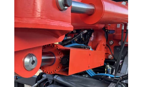 Kun seisontajarru vapautetaan ja liikekytkin aktivoidaan, puomin suspensiojärjestelmä toimii.Suoraan puomin nostosylinteriin kytketty erikoismallinen paineakku ottaa vastaan suurimman osan ajon aikana kehittyvästä paineesta ja suojaa muuta rakennetta isoilta kuormilta ja värinältä.