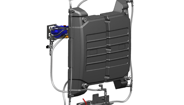 Le système d'alimentation à clapet remplace la vanne d'obturation à l'arrière de la foreuse.
