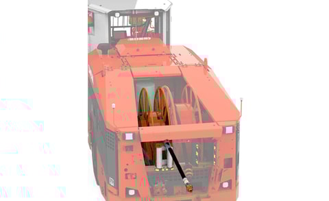 Afin de faciliter la gestion du tuyau d'alimentation en eau et de le protéger lors des phases de roulage, Sandvik a développé un enrouleur de tuyau d'eau.