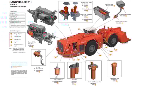Hvert sett er skreddersydd for maskinmodellen, konfigurasjonen og vedlikeholdsintervallene, og følger vedlikeholdsstrategien som anbefales av Sandviks ingeniørteam