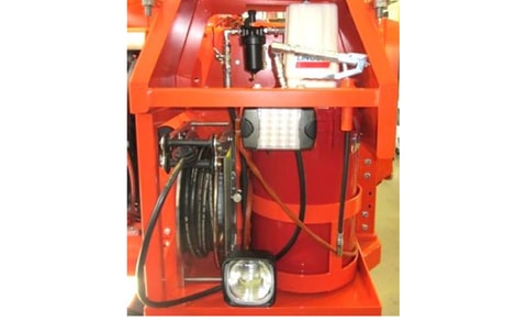Smørehjul med pumpe og dyse gjør det mulig for operatø ren å smøre manuelt på de stedene det er behov for det.