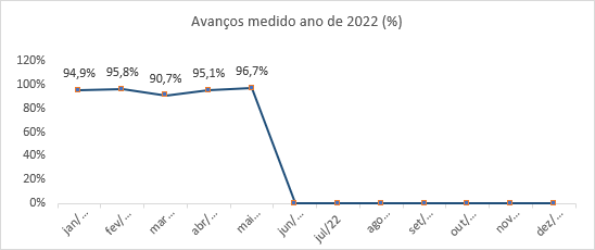 - Em 2022, as taxas de avanço por detonação alcançaram mais de 90%