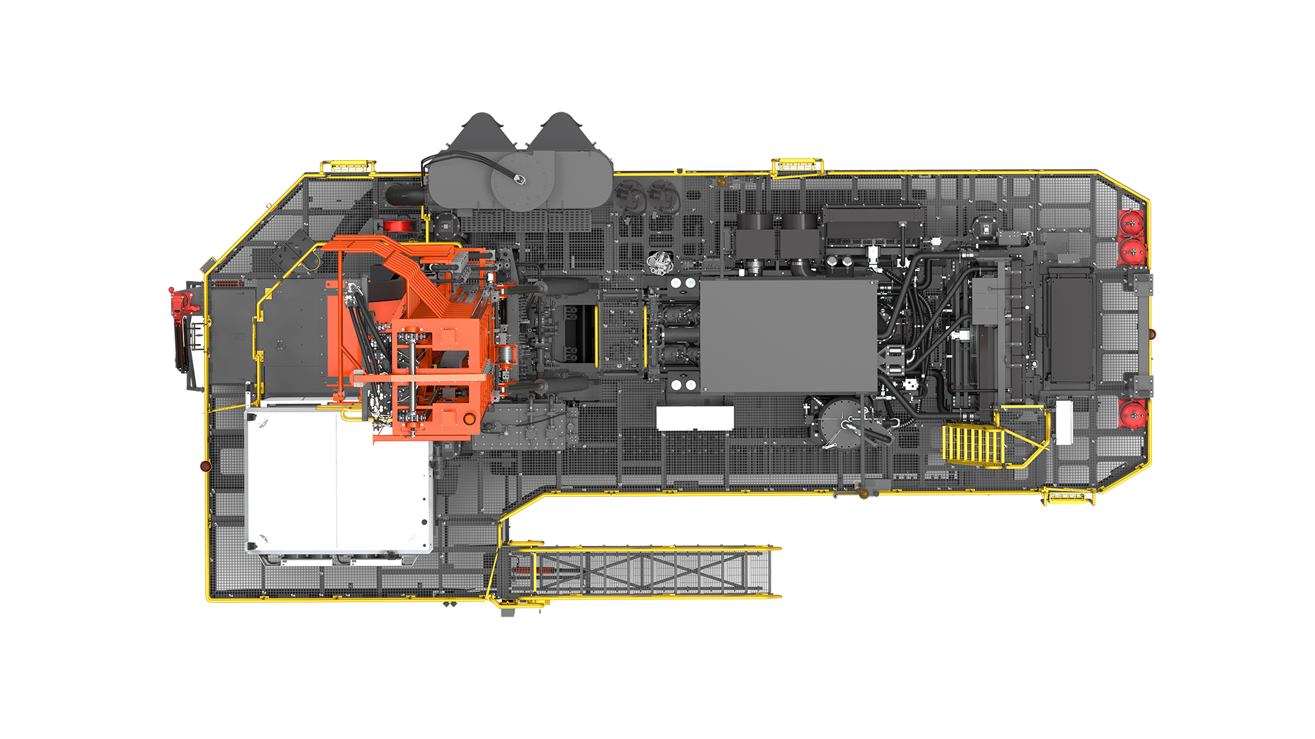 Os operadores têm uma visão desobstruída da mesa de perfuração a partir de uma cadeira elevada e giratória com telas sensíveis ao toque e teclados integrados. As janelas grandes e angulares reduzem o brilho e o teto em estilo safari mantém a cabine mais fresca.
