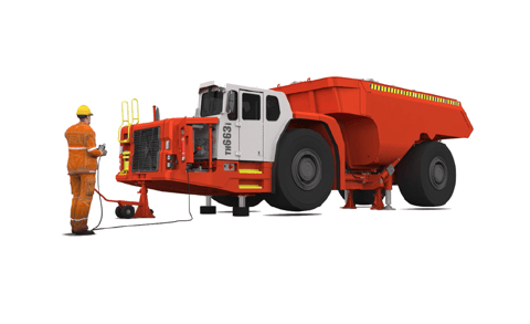 O sistema consiste em quatro cilindros hidráulicos montados nas estruturas dianteira e traseira. Esses cilindros hidráulicos são projetados para levantar o caminhão para a troca do pneu. Cada cilindro é controlado separadamente com um controle remoto conectado à parte externa da cabine por um cabo.O Sistema de Elevação Integrado Sandvik é capaz de elevar o caminhão em qualquer lugar (com solo nivelado e firme) e circunstância, mesmo em espaços confinados ou se o caminhão estiver totalmente carregado.