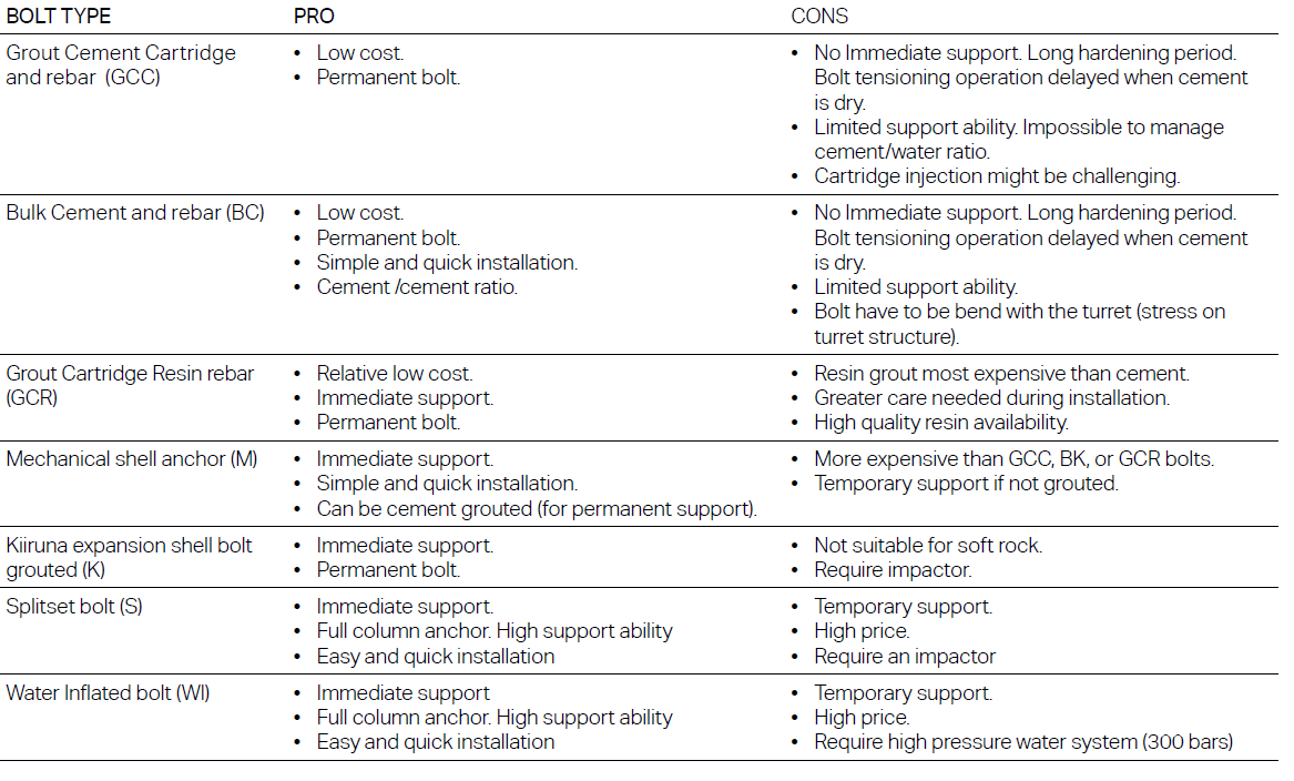 Изменения в методах добычи, геологии горных пород, использовании машин или правилах техники безопасности может потребовать установки анкеров другого типа или длины.