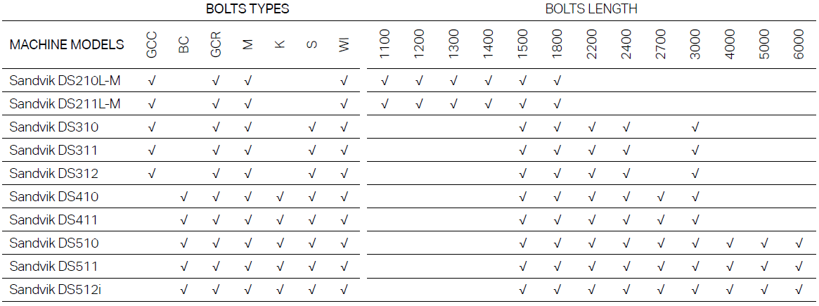 Решение по изменению типа и длины анкера доступно для следующих моделей буровых установок подземного бурения: