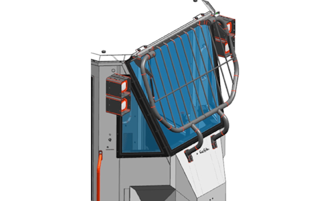 Защитная решетка устанавливается на кабине, закрывает лобовое стекло и складывается вручную, что позволяет производить очистку или замену лобового стекла, а также обслуживание стеклоочистителей.