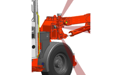 - Автоматически останавливает любое движение стрелы и бурение, как только кто-либо входит в опасную рабочую зону.