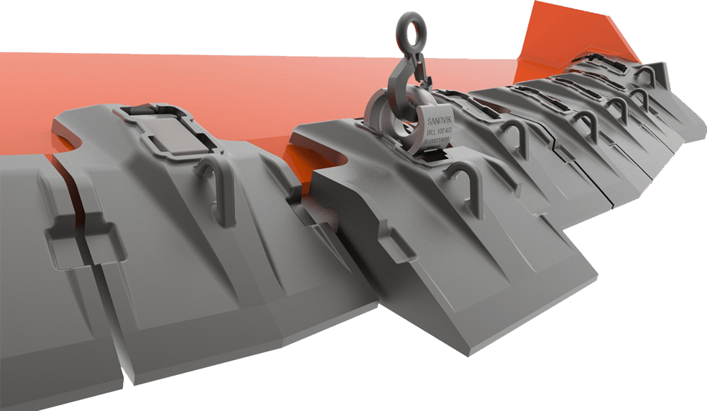 • Raka kåpor och hörnkåpor optimerade för slitstyrka på 1:1, vilket eliminerar behovet av byte av hörn efter halva användningstiden. (*)
