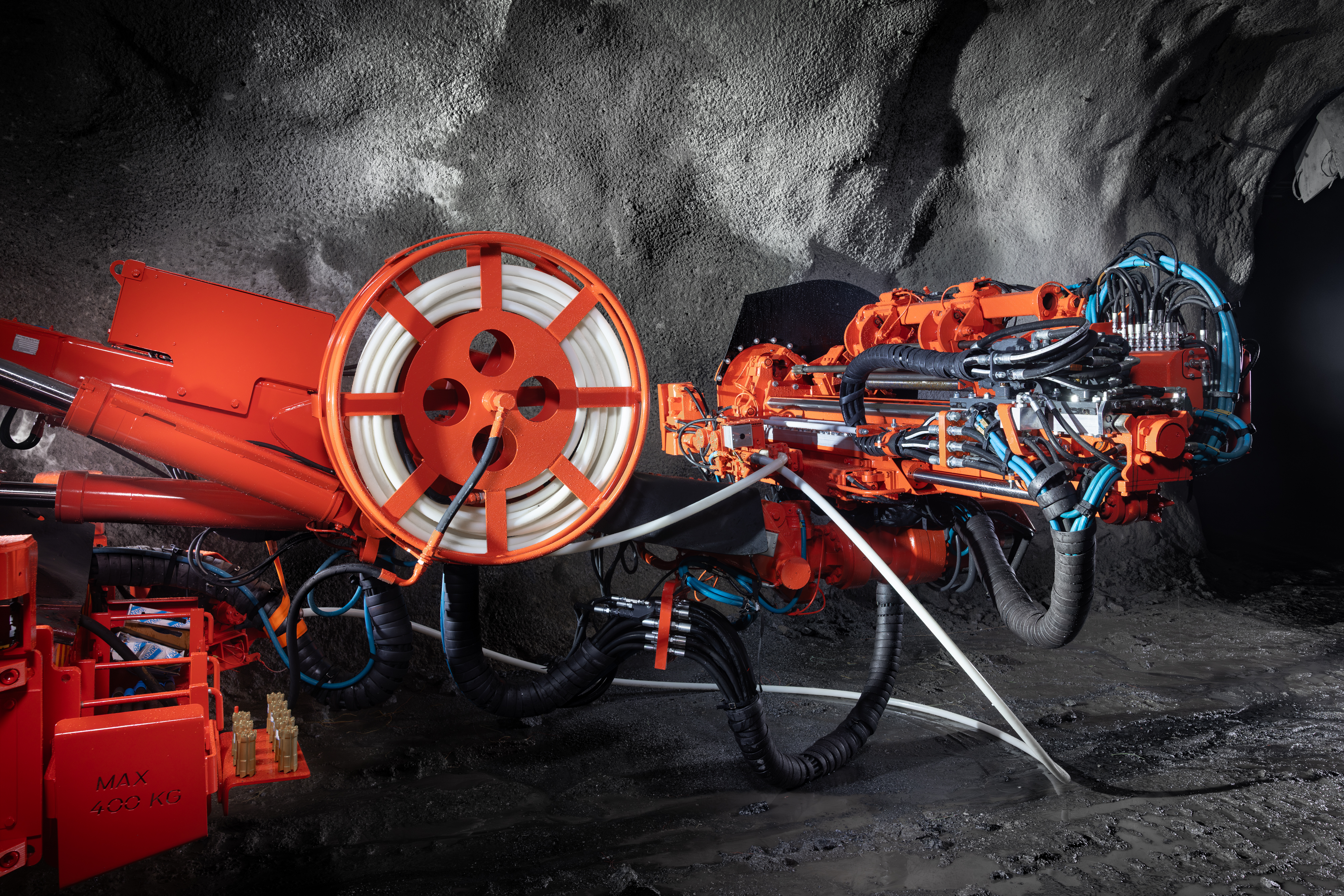 这种纯电池驱动的锚索台车可消除行驶过程中的废气排放,降低噪音和热负荷。锚杆支护过程由远离钻孔、灌浆和锚索安装模块的单人操作完成。