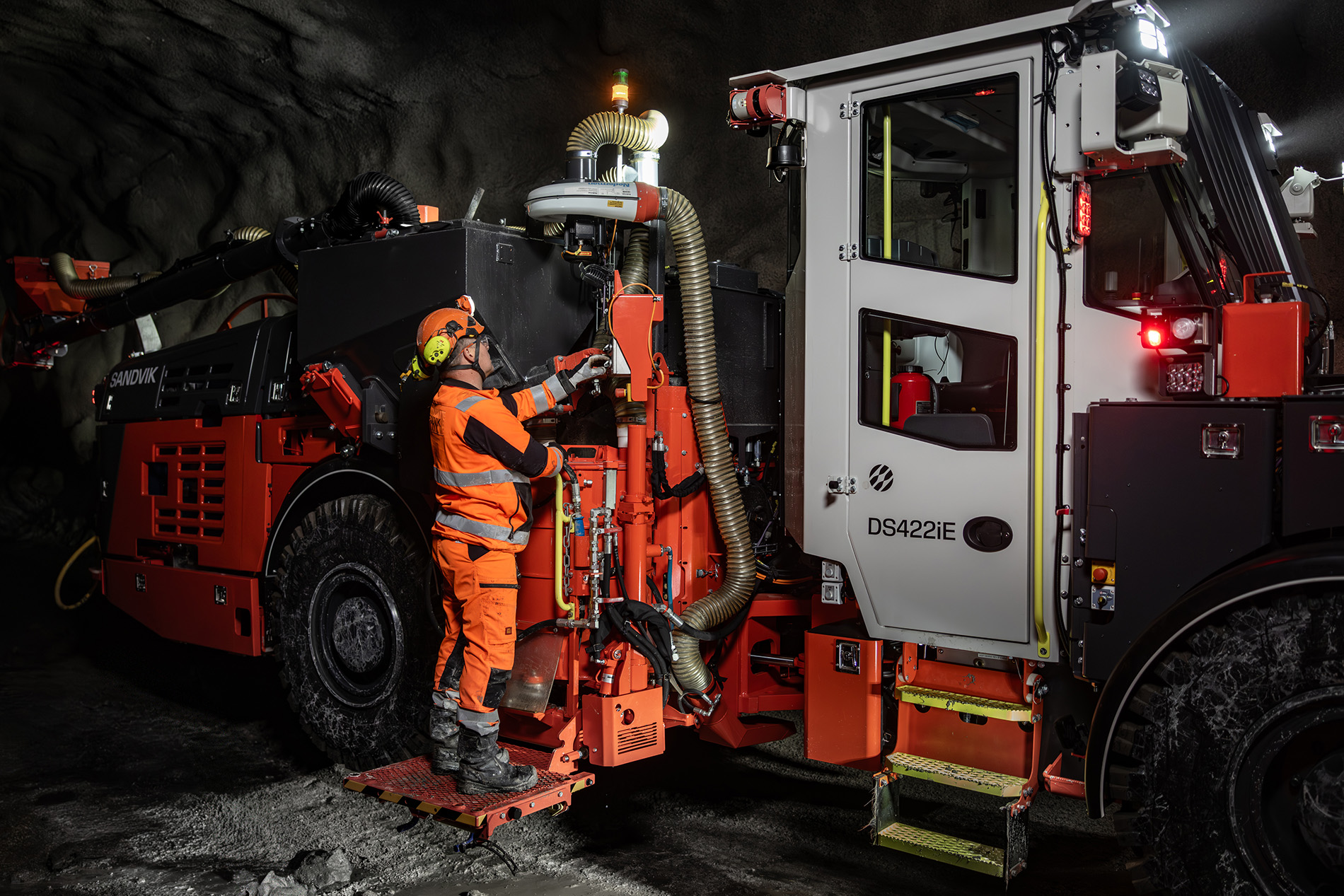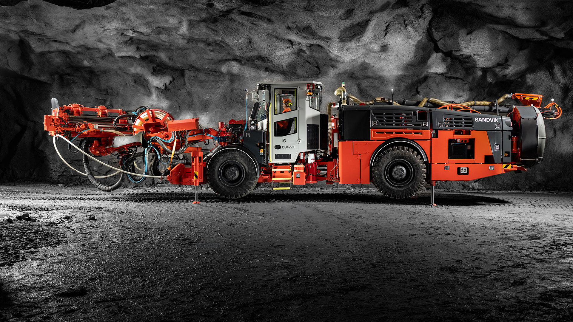 Sandvik DS422iE 是一款电池供电的锚杆支护机,专为水泥灌浆锚杆安装而设计,可使用电池供电进行电车、钻孔和灌浆。该锚杆钻孔机最多可安装 25 米长的锚杆支护,每个孔可安装数根钢绞线,并配有机载自动水泥搅拌机和水泥仓。