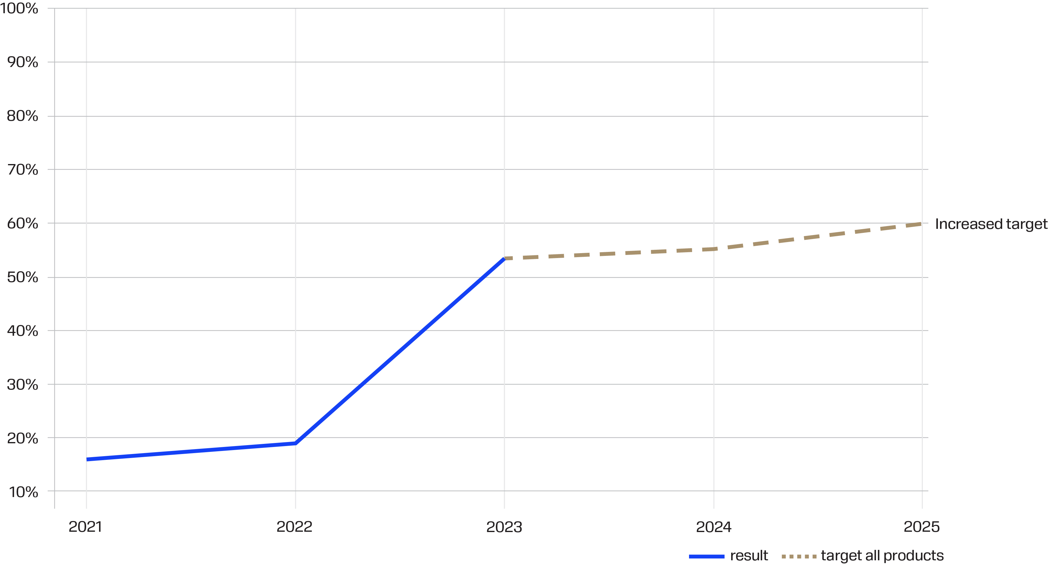 我们销售区域的开采装置数量继续增长,但遗憾的是,我们面临着一些与回收材料物流相关的挑战,这导致我们重新评估我们的目标水平。 2024 年的目标是 60%,2025 年的目标是 75%。