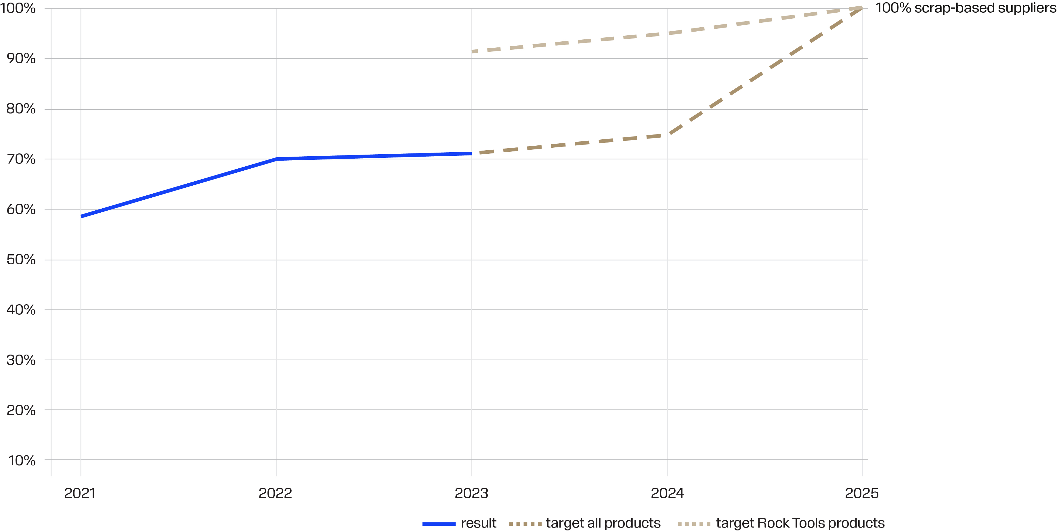2023 年,我们通过废钢电弧炉路线供应的钢材总体水平达到 70%,因此实现了目标。