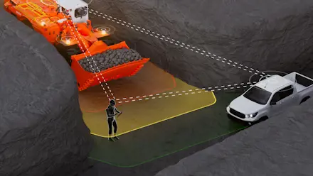 山特维克的二级防碰撞解决方案,旨在降低地下环境中涉及行人、轻型车辆和重型设备的受伤、死亡和碰撞风险。 它通过向 Newtrax 车辆设备提供关键数据(包括方向、速度、档位、坡度和有效载荷)来增强态势感知。 这些数据支持动态调整检测区域,有效减少误报,同时提供全面的态势洞察。