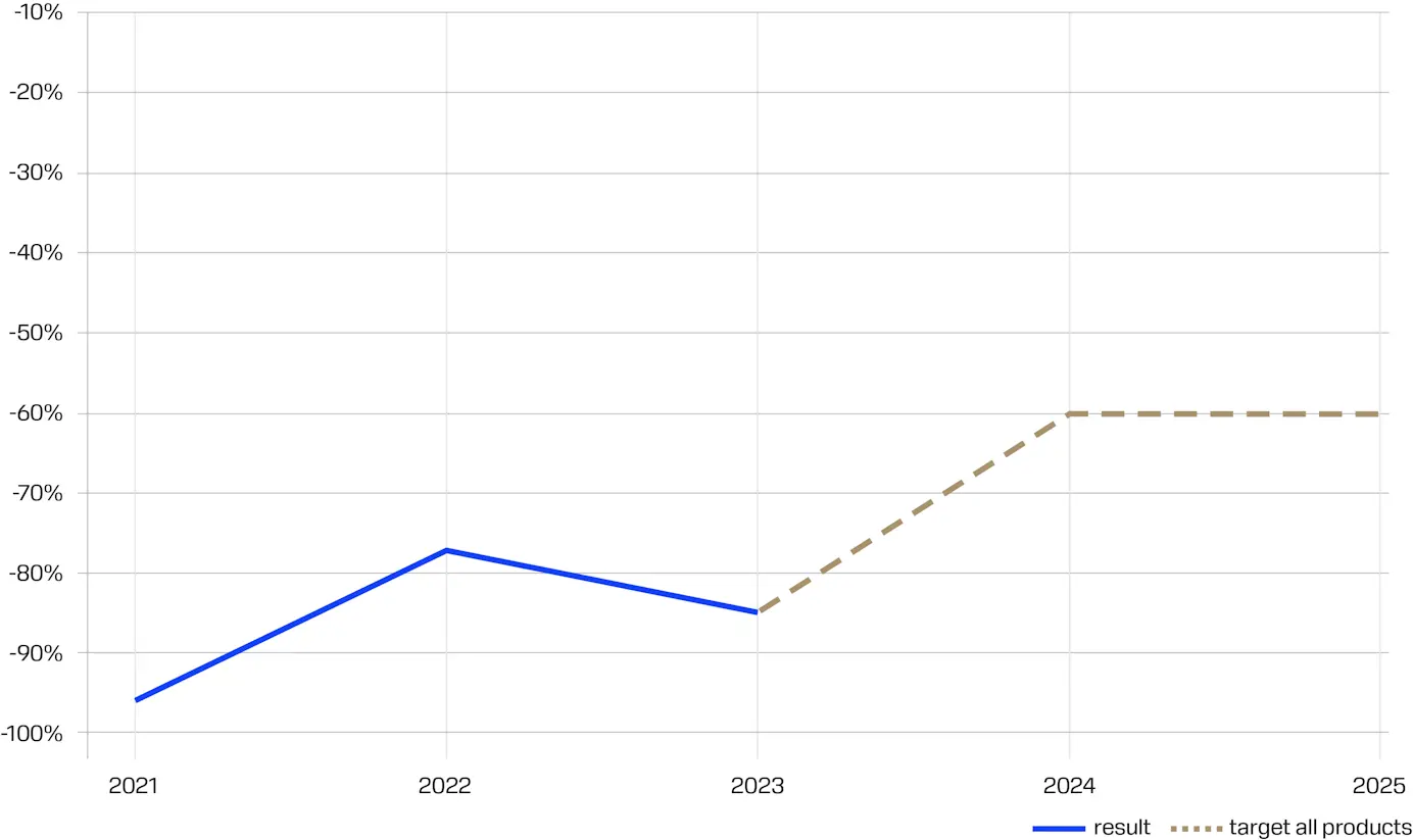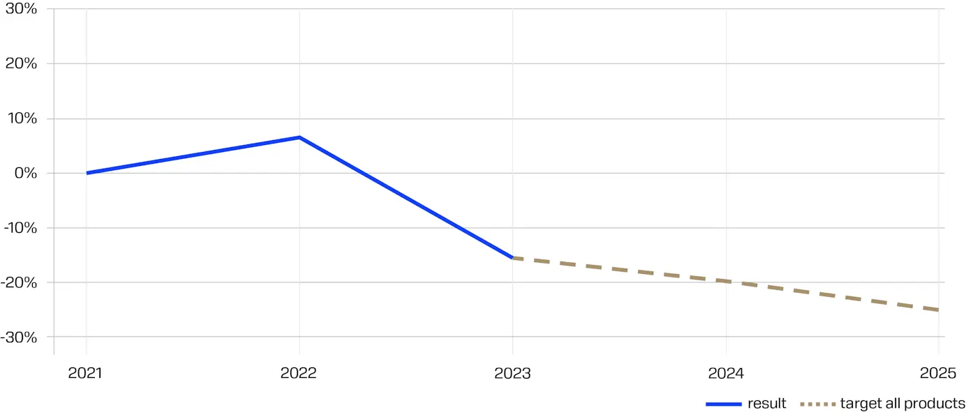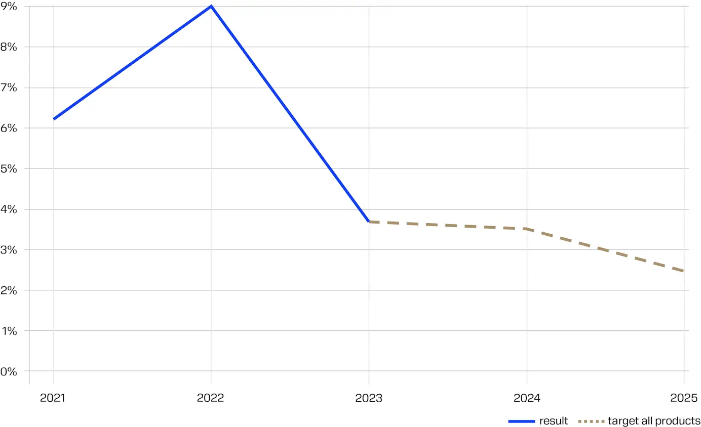 2023 年实现的结果是 3.7%,超过了 5% 的目标。 这是通过稳定全球货运形势(与 2022 年动荡的一年相比)以及更好地控制我们的需求规划和供应链绩效来实现的。