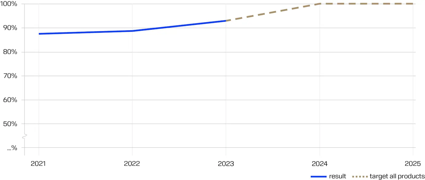 目前,我们所有的生产单位都已实现无化石电力供应,因此要实现的目标是 100%。